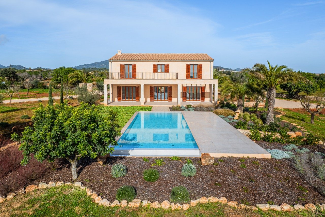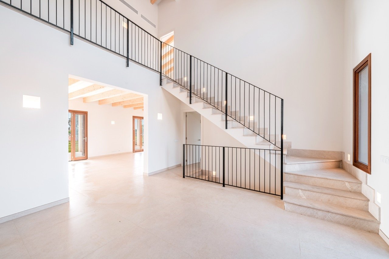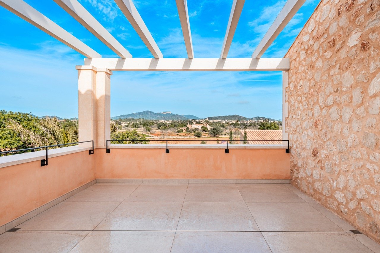 Set on an impressive plot of approximately 16,870 m² and approached via a graceful wrap-around driveway, this newly built finca combines complete privacy with breathtaking views of the Mallorcan countryside and distant mountains. Ready to move in, it offers an effortless Mediterranean lifestyle for those seeking tranquility without compromising on style. Traditional Mediterranean details on the exterior blend harmoniously with modern, minimalist interiors, creating a warm, timeless, and inviting home.
