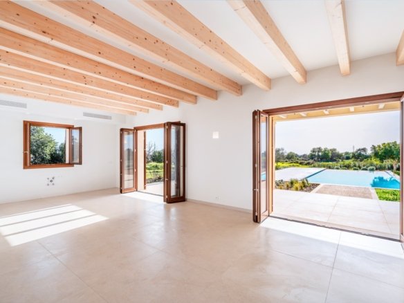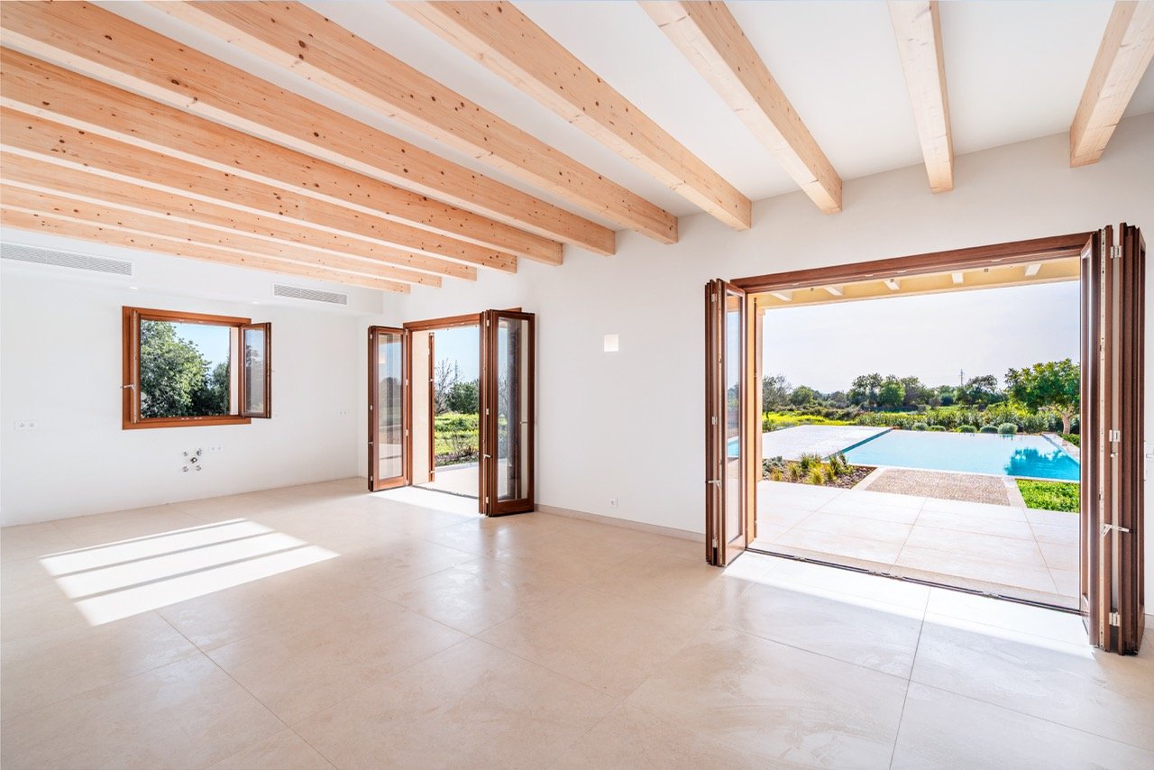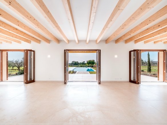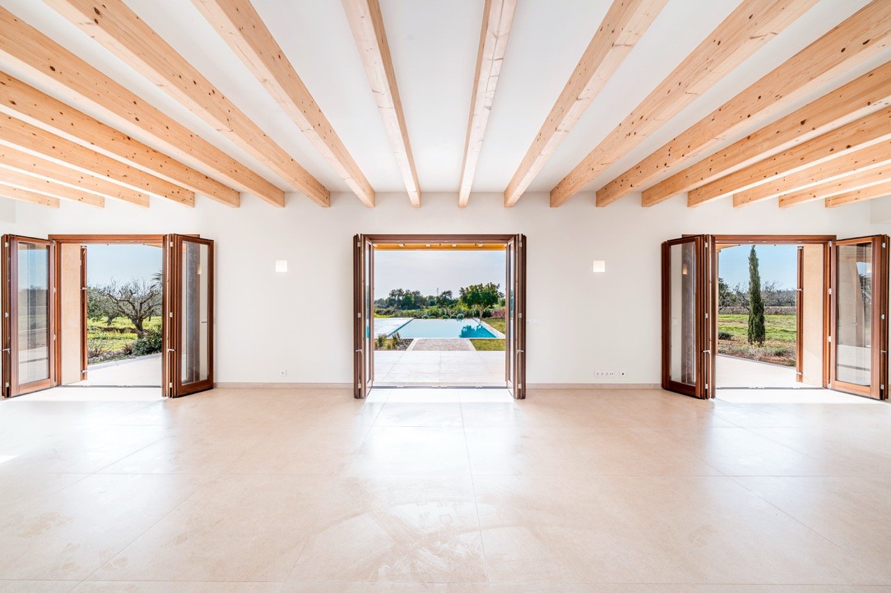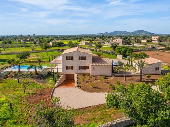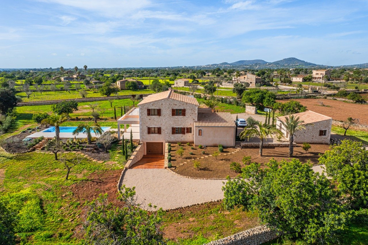 Set on an impressive plot of approximately 16,870 m² and approached via a graceful wrap-around driveway, this newly built finca combines complete privacy with breathtaking views of the Mallorcan countryside and distant mountains. Ready to move in, it offers an effortless Mediterranean lifestyle for those seeking tranquility without compromising on style. Traditional Mediterranean details on the exterior blend harmoniously with modern, minimalist interiors, creating a warm, timeless, and inviting home.